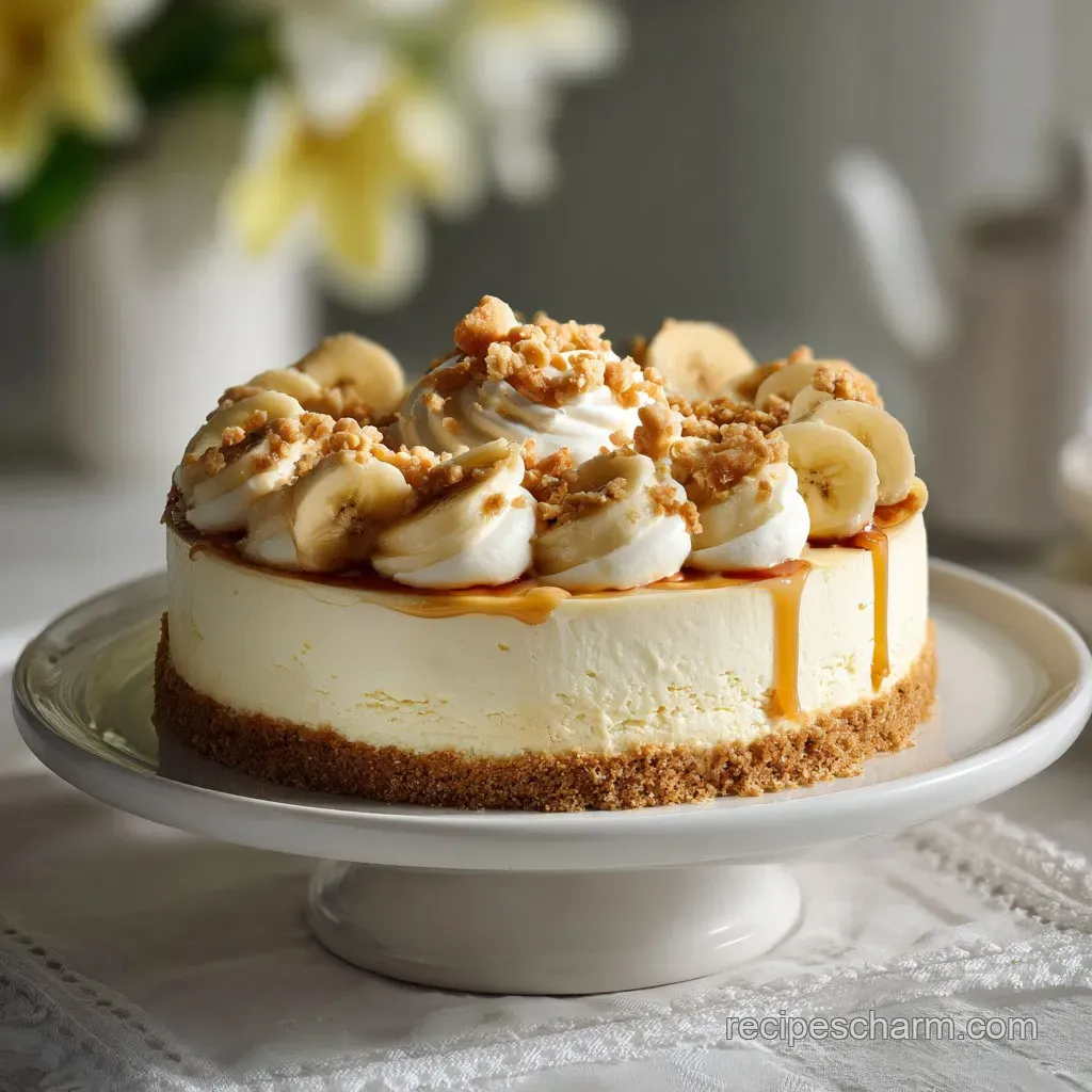 The baked cheesecake base lasts up to 48 hours refrigerated. Wait to add any fresh banana slices or whipped cream topping until just before serving to maintain texture and appearance.